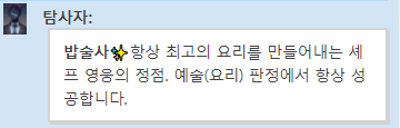 플레이어로서 가끔, 유머러스한 멘트를 강조하고플 때 사용합니다.